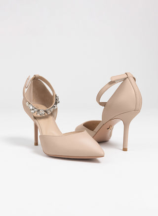 Adorné nude flower Strap and basic leather strap - One shoe, two strap options.