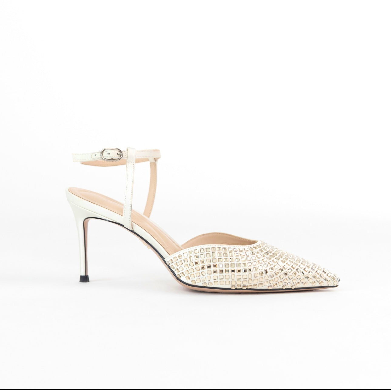 Med sin elegante silhuet, glitrende overflade og delikate ankelrem er denne hæl skabt til at gøre dig til centrum for opmærksomheden ved enhver festlig lejlighed. Mirage blander drøm og virkelighed, for dem der søger stil med et strejf af magi.