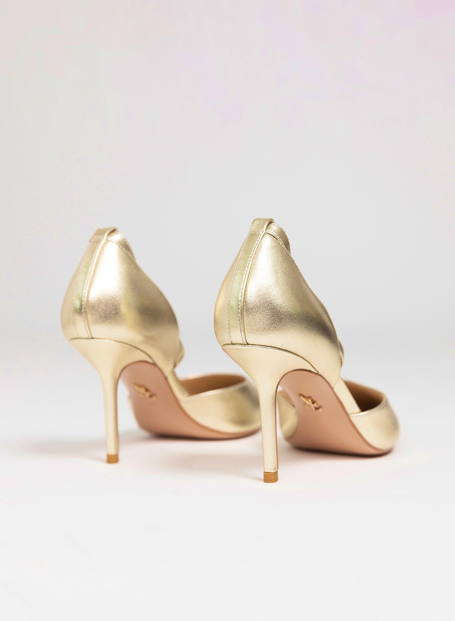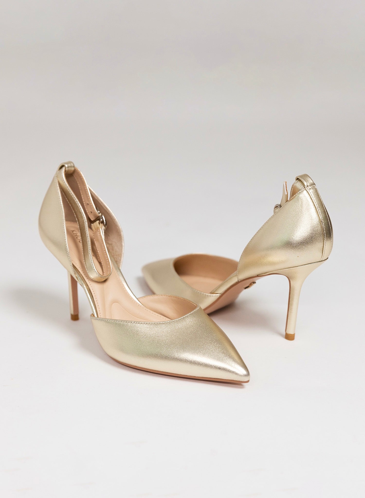Med vores Adorné Gold Metallic-stil har du fleksibiliteten til at vælge mellem 2 forskellige stroppemuligheder og skabe et unikt look. Uanset om du går efter et afslappet eller et elegant look, er vores sko det perfekte tilbehør til at komplementere dit outfit.
