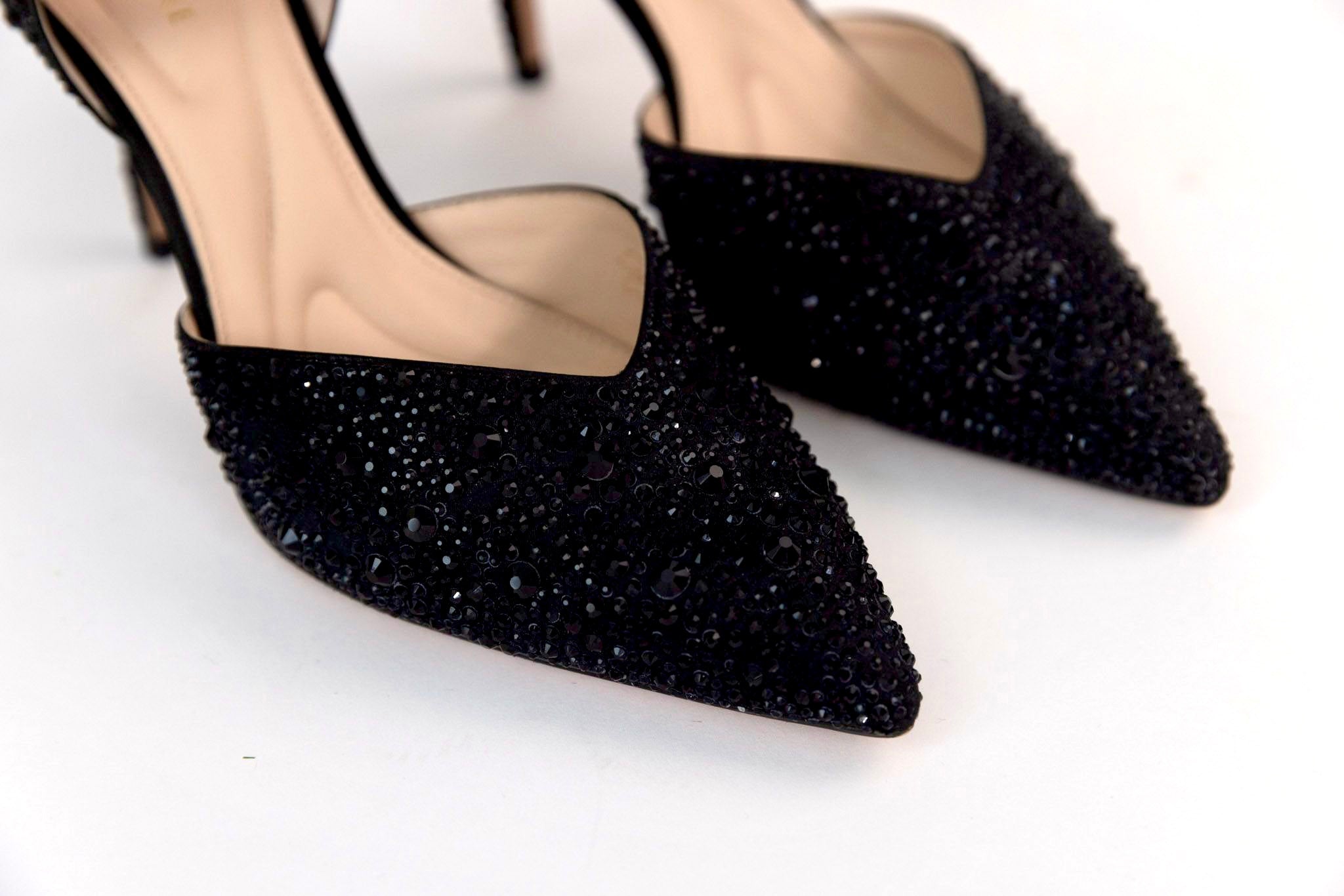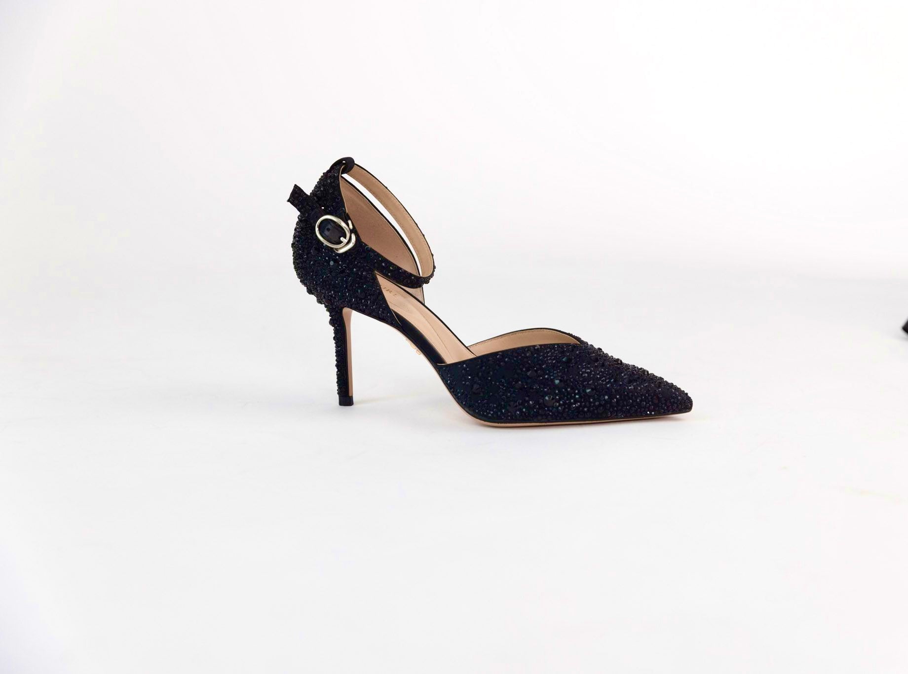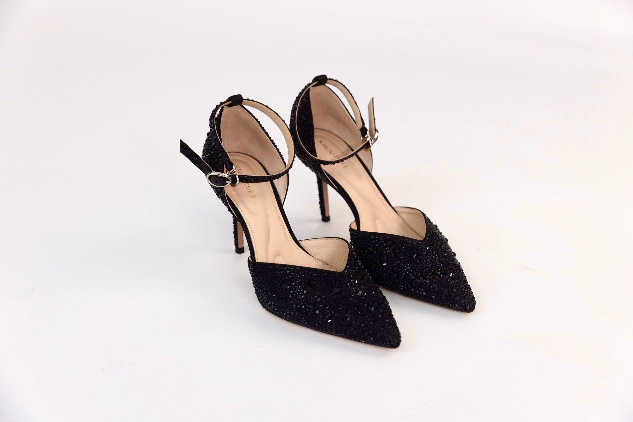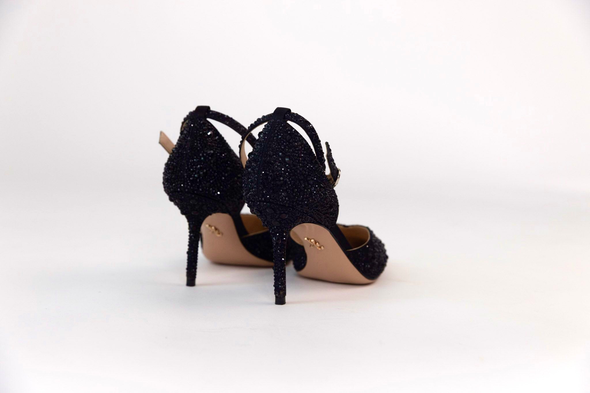 Wenn die Dunkelheit flüstert, antwortet Eleganz. Entdecken Sie Eclipse , wo Geheimnis und Schönheit verschmelzen. In tiefes Schwarz gehüllt und mit schimmernden schwarzen Strasssteinen besetzt, birgt dieses Design den Zauber der Nacht. Mit seinem eleganten 8-cm-Absatz verkörpert es Kraft, Anmut und einen Hauch des Unbekannten – geschaffen für all jene, die ohne Worte fesseln.