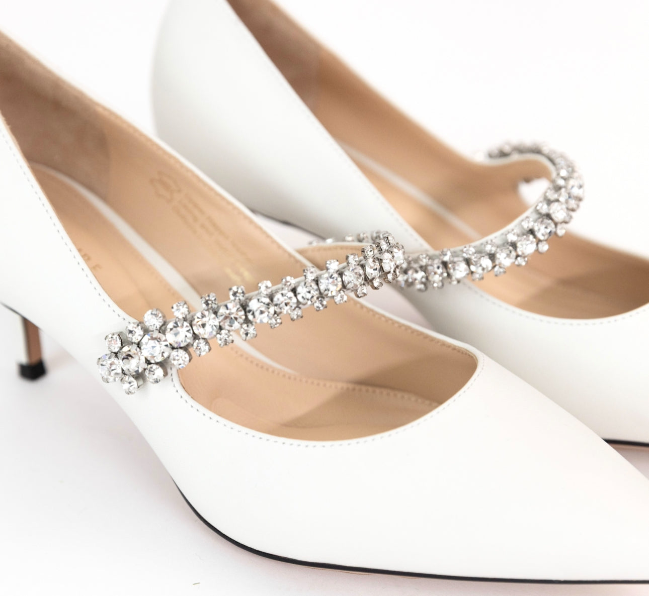 Elegante Lederpumps mit Kristallriemen – ideal für Hochzeiten und Partys